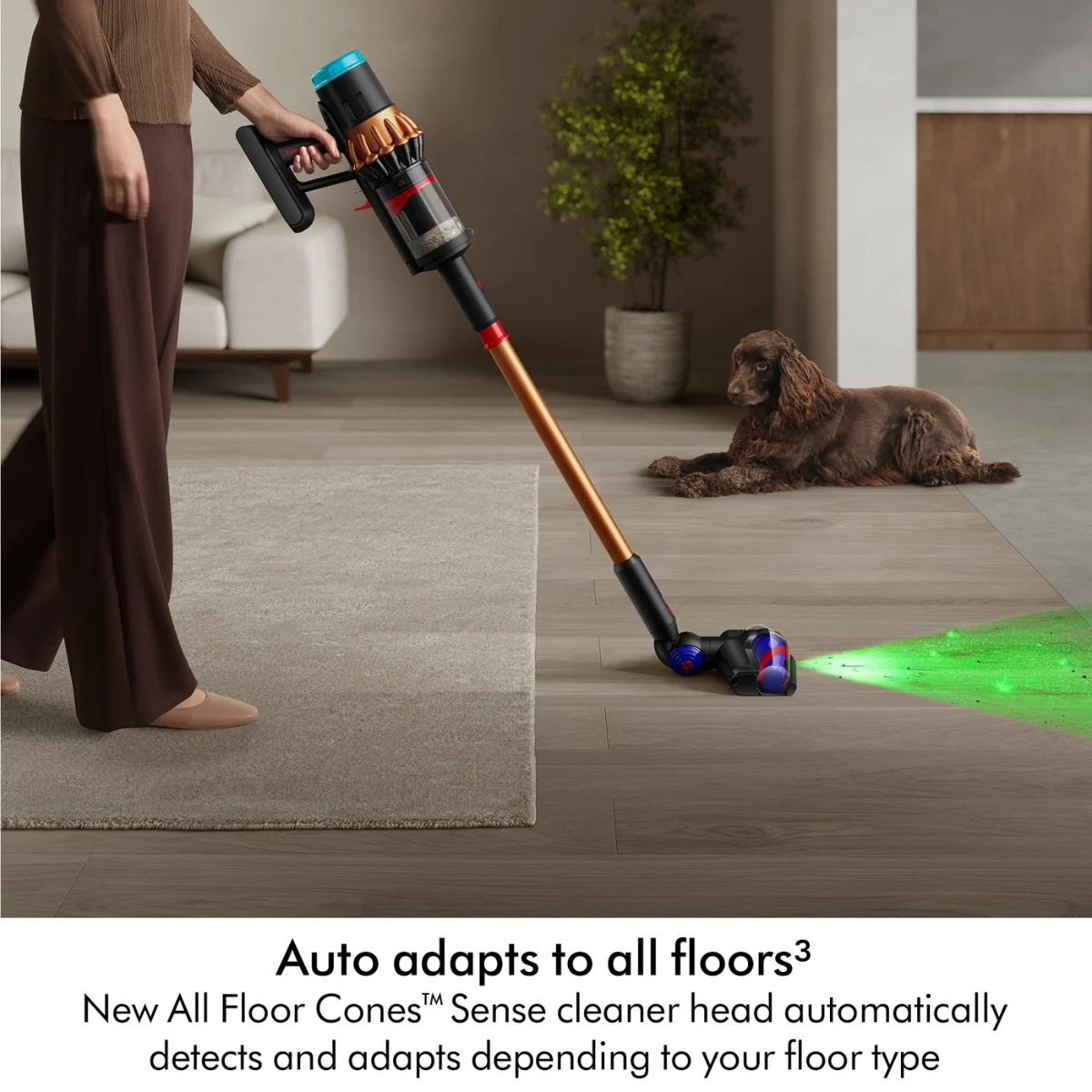 New All Floor Cones™ Sense cleaner head intelligently detects your floor type and automatically adapts depending on your task.