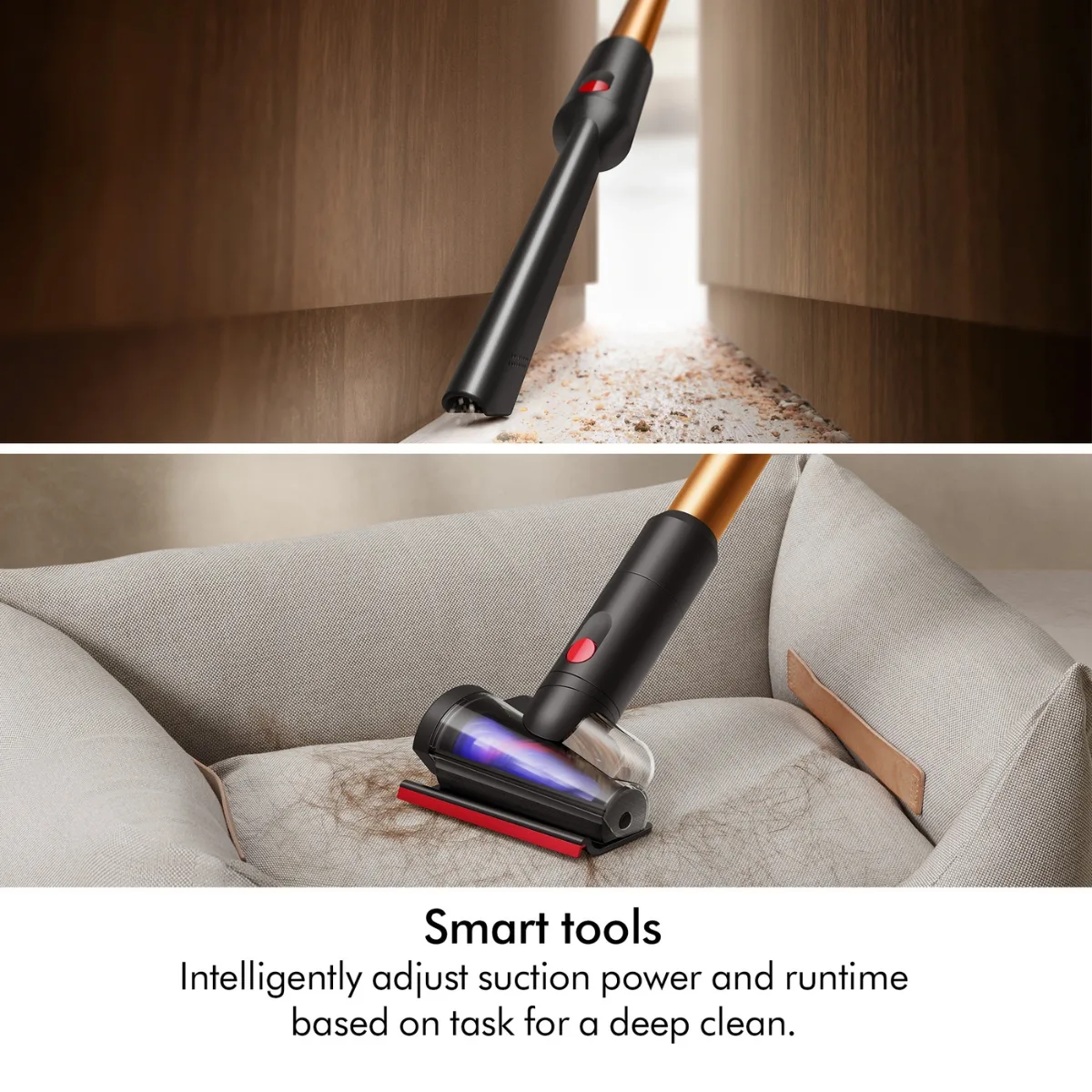 Intelligently adjusts suction power and run time based on the task for a deep clean