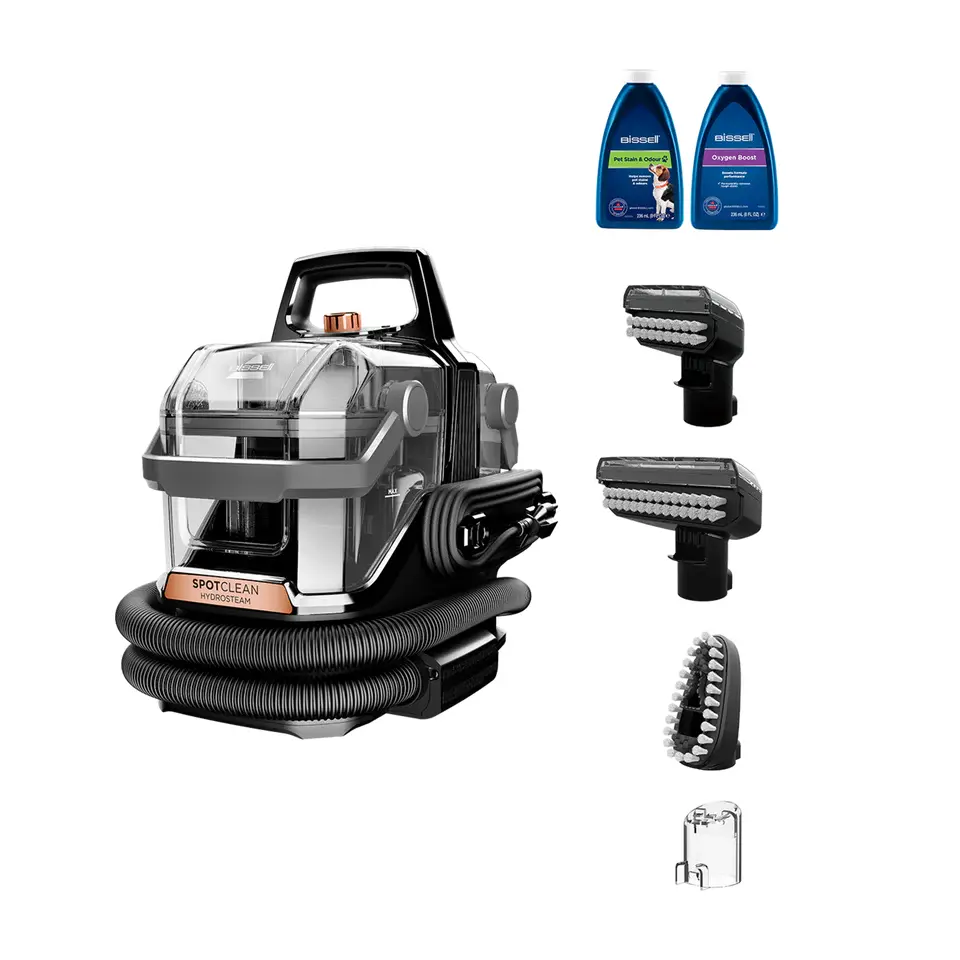 HydroSteam™ Technology: Cleans up to 50% better* by combining steam, powerful suction, and BISSELL formula to remove tough, stuck-on, and oily messes from carpets, upholstery, and more.